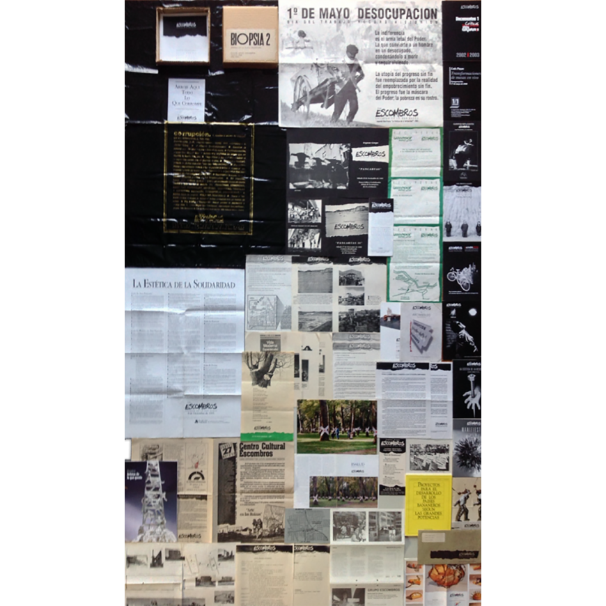 26/ "Documentos 1. Críticas, Textos propios, Notas periodísticas". Editado por el Grupo Escombros, agosto 2004. Edición de 300 ejemplares