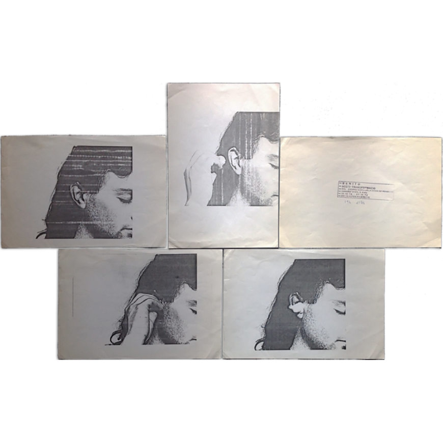 4 fotocopias de las fotografías con la secuencia de una de las acciones del artista en la Sala de Exposiciones de la Caixa de Pensions de Barcelona (la acción consistió en introducirse un algodón en la oreja). En sobre postal con sello de Benito y remitido a un coleccionista de Barcelona