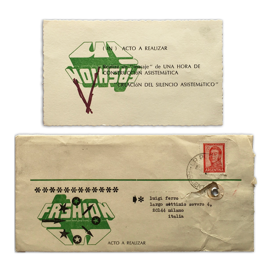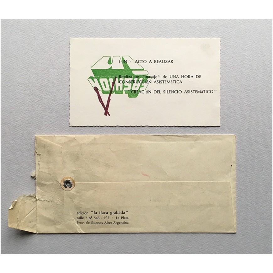 "Acto a realizar. Realiza un 'masaje' de una hora de construcción asistemática". "Creación del silencio asistemático"