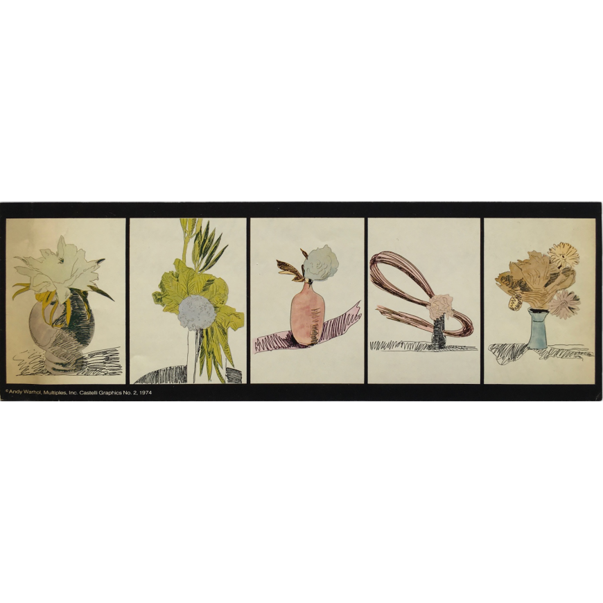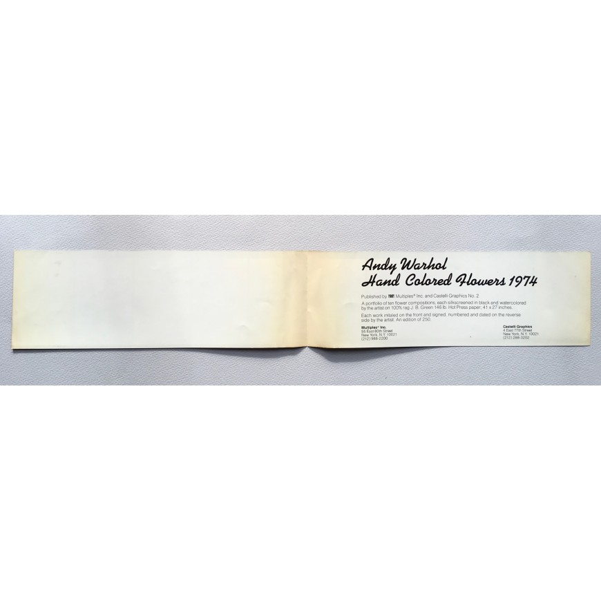 Andy Warhol Hand Colored Flowers 1974. Published by Multiples Inc. and Castelli Graphics No. 2. A portfolio of ten flower compositions, each silkscreened in black and watercolored by the artist... . Each work initaled on the front and signed, numbered and dated on the reverse side by the artist. An edition of 250