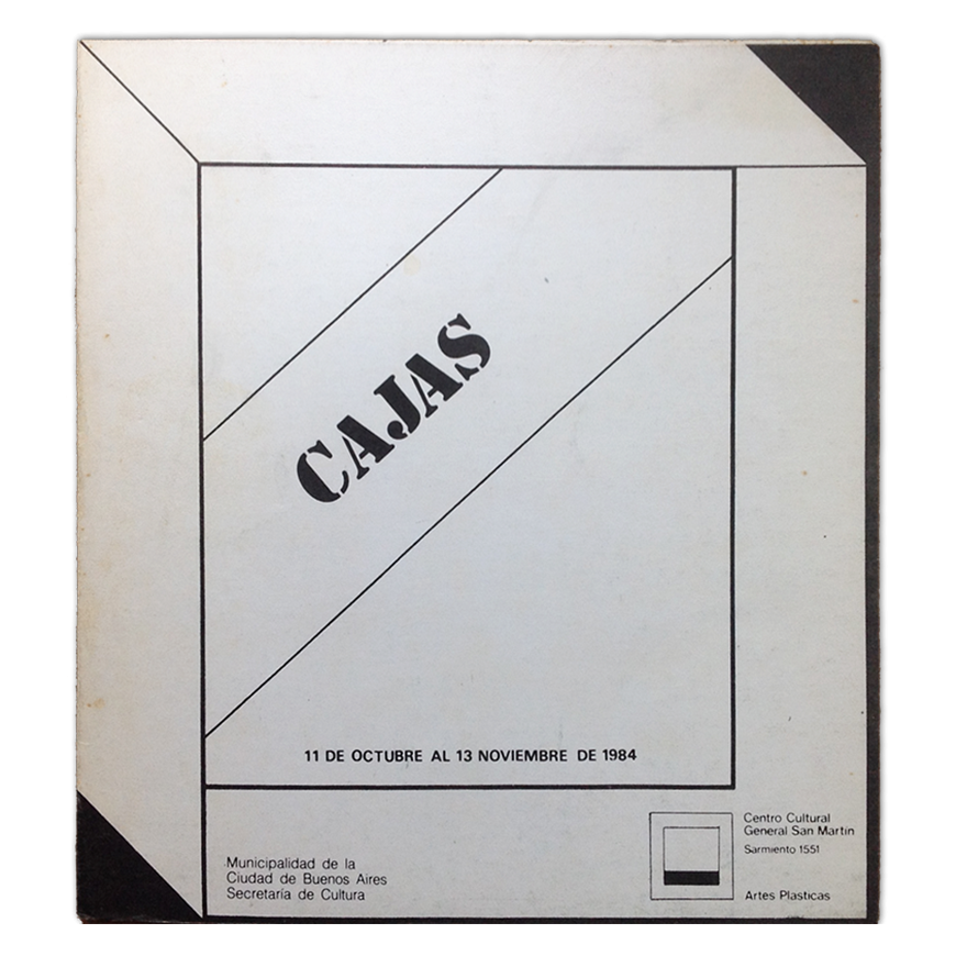 Cajas. Centro Cultural General San Martín - Artes Plásticas, Buenos Aires, 11 de octubre al 13 de noviembre de 1984