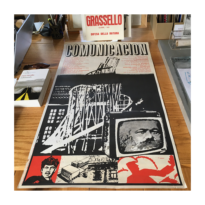 Cartel de "Comunicación", el sello editorial de Alberto Corazón. Leves marcas de doblez en los bordes y pequeña pérdida en el borde izquierdo, por lo demás buen estado. Diseño: Alberto Corazón