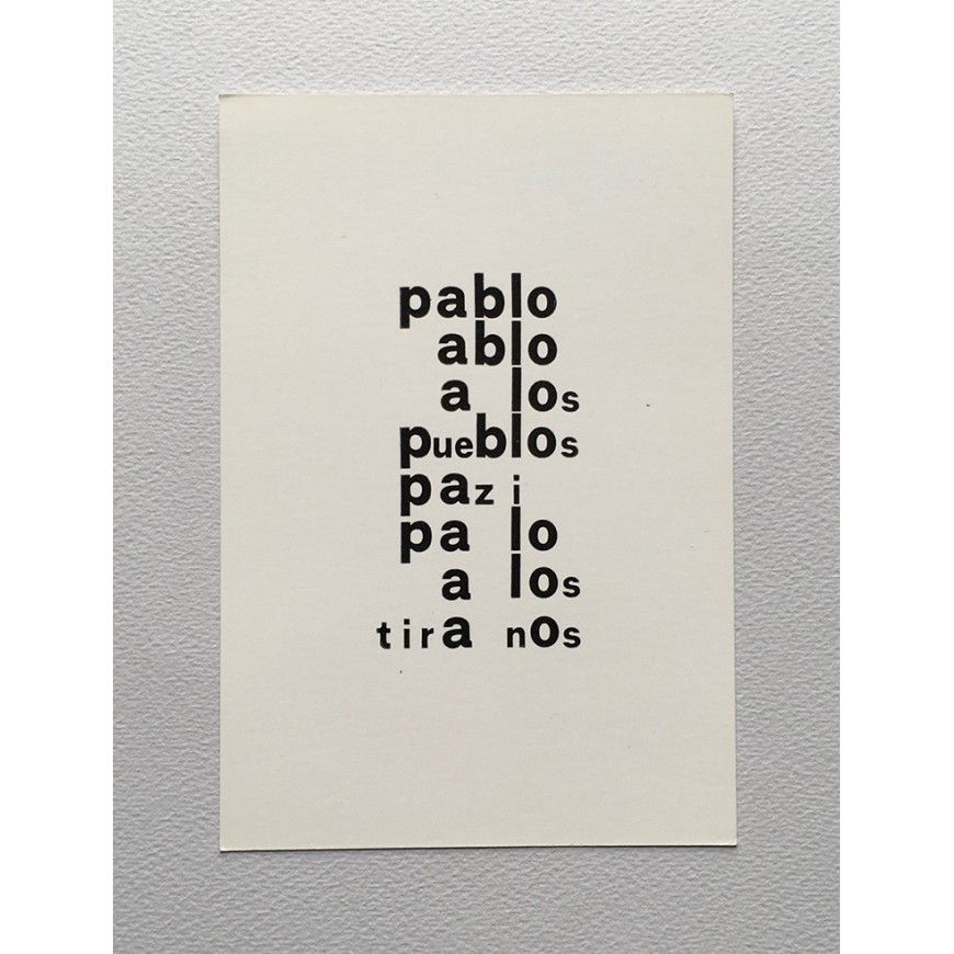 Se adjunta tarjeta de la muestra con poema visual de Pablo del Barco: "Apuesta para una definición personal", 1979 (Euskal Bidea Ediciones - Colección "Nueva Escritura")