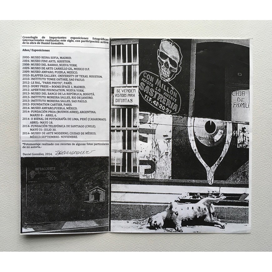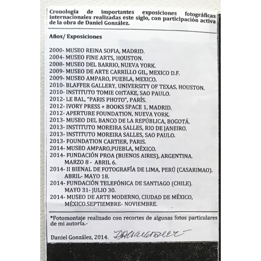 Se adjunta díptico fechado en 2014 con un fotomontaje realizado por González con recortes de algunas fotos particulares de su autoría y con su firma manuscrita. Este documento también incluye una relación cronológica de sus exposiciones fotográficas internacionales