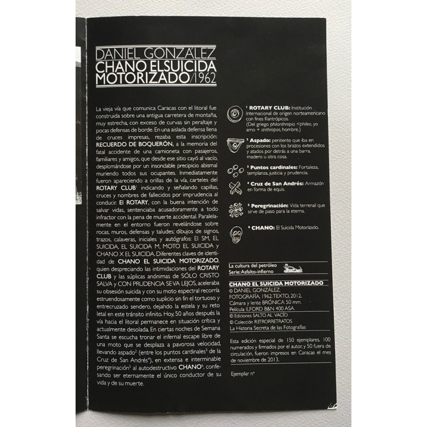 Desplegable con fotografías de la serie "Chano El Suicida Motorizado" realizadas por Daniel González en 1962. Con texto del artista. Edición especial de 150 ejemplares