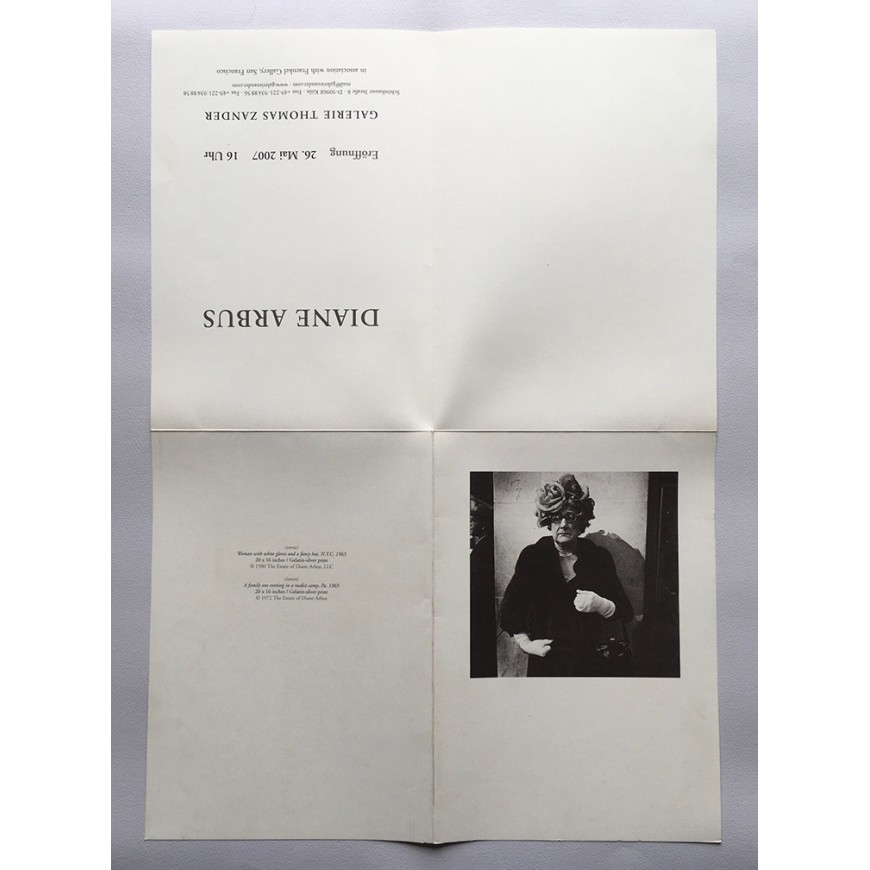 Diane Arbus. Galerie Thomas Zander, Köln, 26 Mai - 25 August 2007 (in association with Fraenkel Gallery)