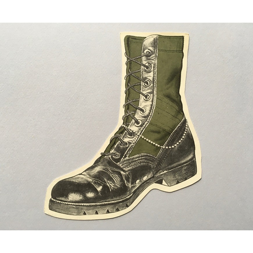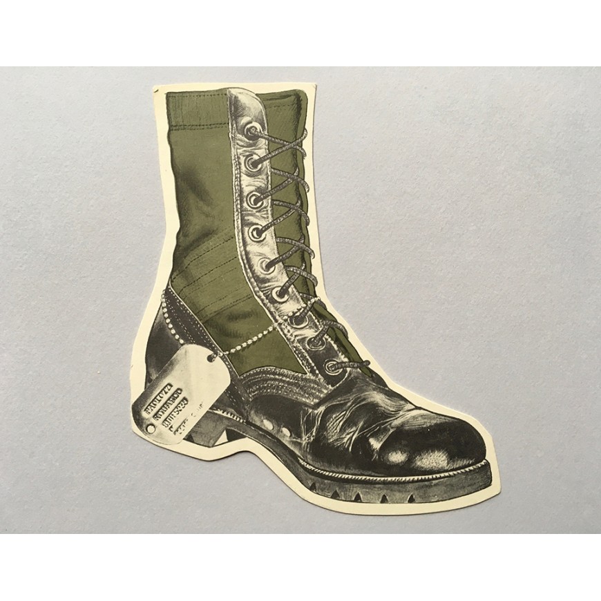 Hoja-invitación a la exposición impresa por ambas caras y plegada en tres. Se adjunta el encarte que se incluía en el catálogo (bota troquelada en cartulina)