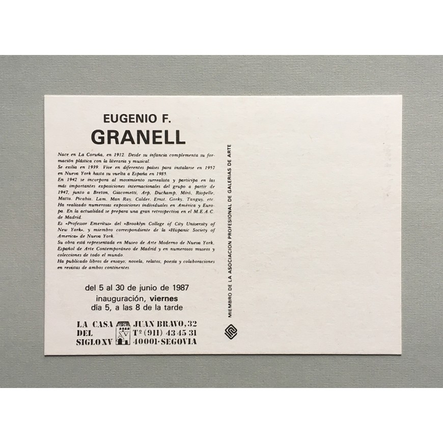 Eugenio F. Granell. La Casa del Siglo XV, Segovia, del 5 al 30 de junio de 1987