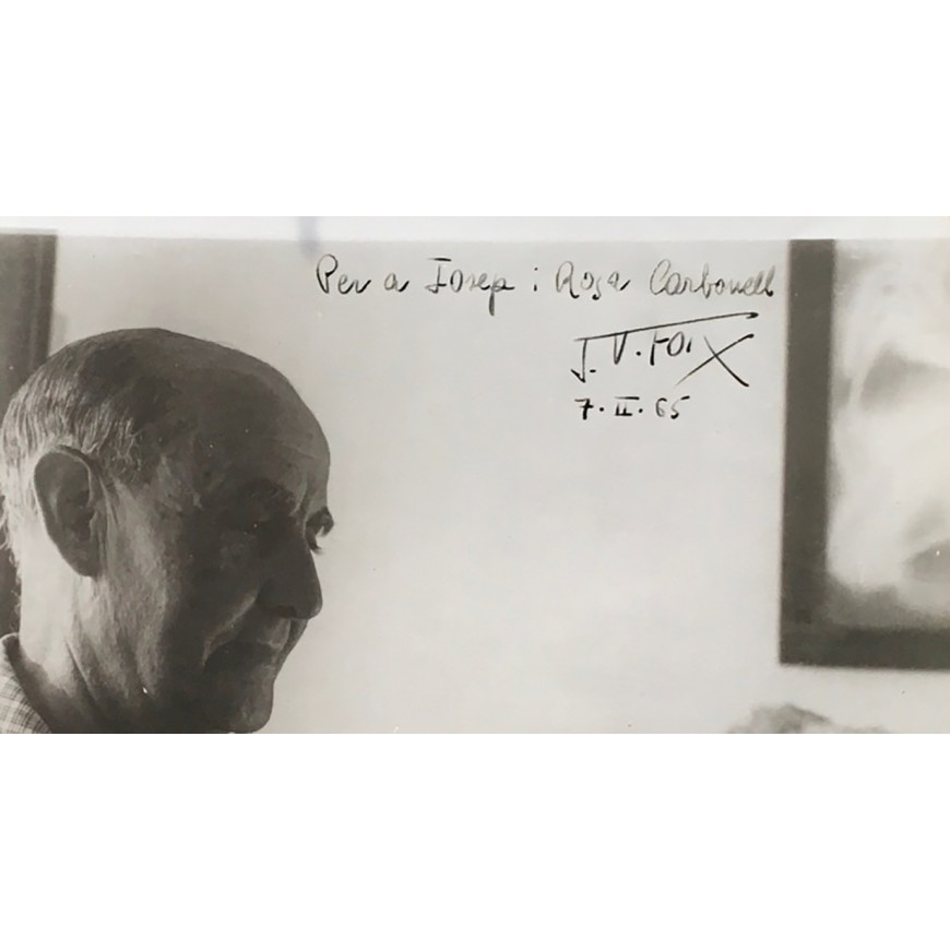 Retrato fotográfico en b/n del poeta catalán J. V. Foix. Con dedicatoria manuscrita de Foix: "Per a Josep i Rosa Carbonell, J. V. Foix, 7-III-65" (Josep Carbonell i Gener y su mujer Rosa Montanyà). Con fecha del 7 de marzo de 1965