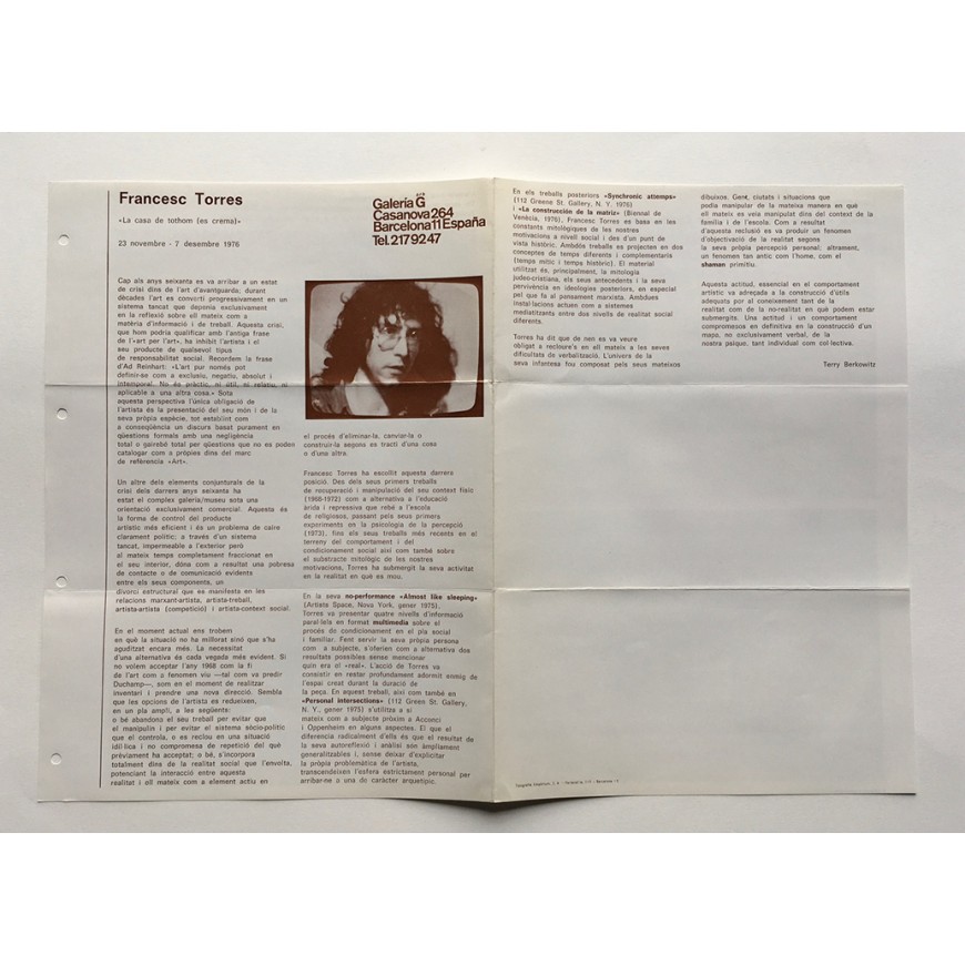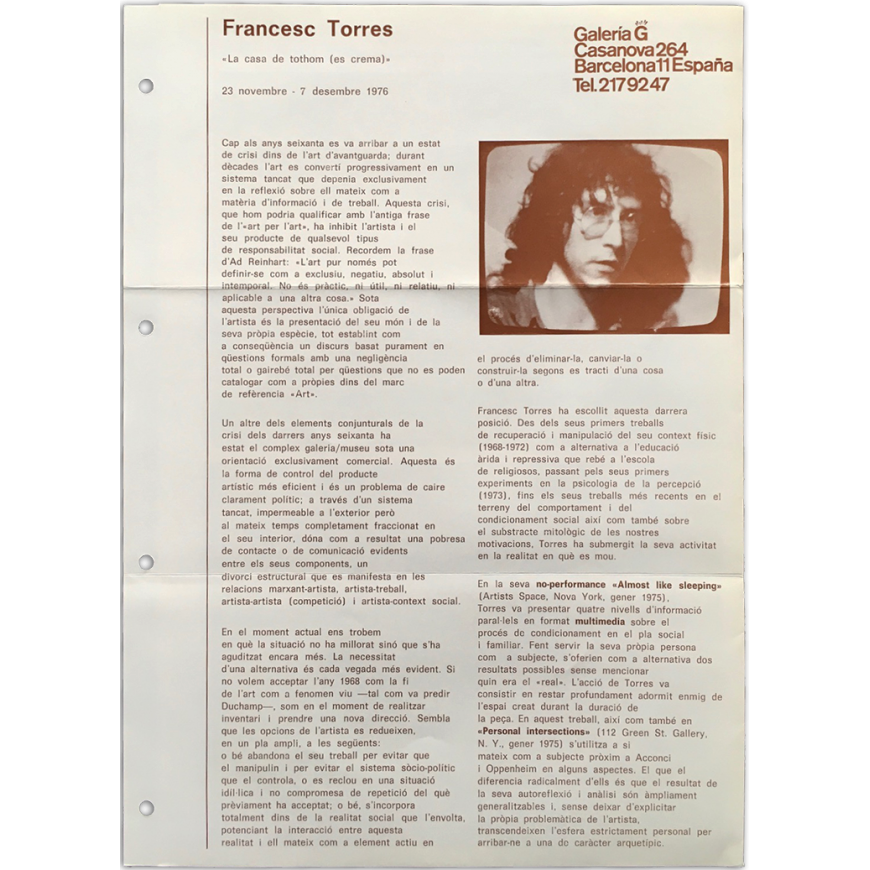 Francesc Torres - "La casa de tothom (es crema)". Llançà - Nova York. Galería G, Barcelona, 23 novembre - 7 desembre 1976
