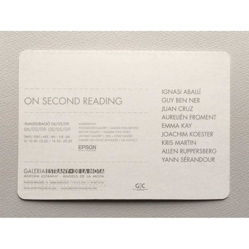Ignasi Aballí, Guy Ben Ner, Juan Cruz, Aurelién Froment, Emma Kay, Joachim Koester, Kris Martin, Allen Ruppersberg, Yann Sérandour - On second reading. Galería Estrany-de la Mota, Barcelona, 06/03 - 08/05, 2009