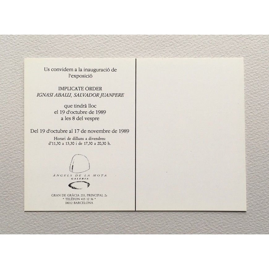 Ignasi Aballí, Salvador Juanpere - Implicate order. Galería Àngels de la Mota, Barcelona, 19 octubre - 17 novembre 1989