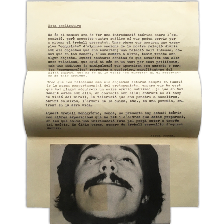 Adjunta hoja suelta con texto mecanoscrito de Jordi Cerdà explicando su obra (en catalán)