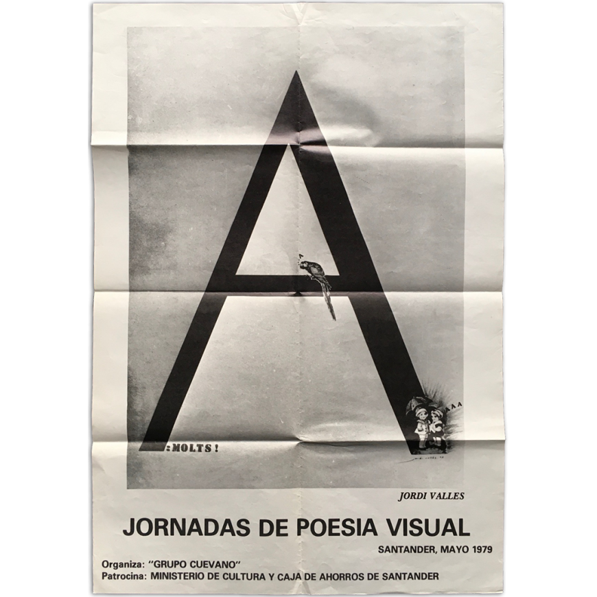 Cartel de la exposición organizada por el "Grupo Cuévano". Ilustrado con un poema visual de Jordi Vallès. Plegado en ocho. Buen estado