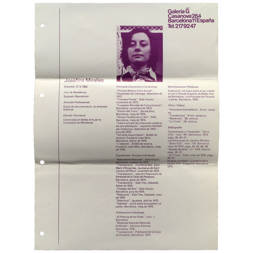 Josefina Miralles. Galería G, Barcelona, juny - juliol 1977