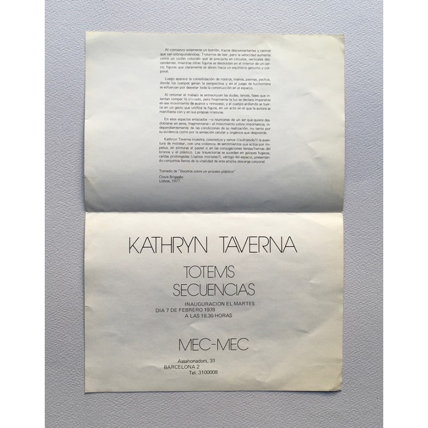 Kathryn Taverna - Totems secuencias [Sculpture and Drawings]. Galería Mec-Mec, Barcelona, febrero 1978