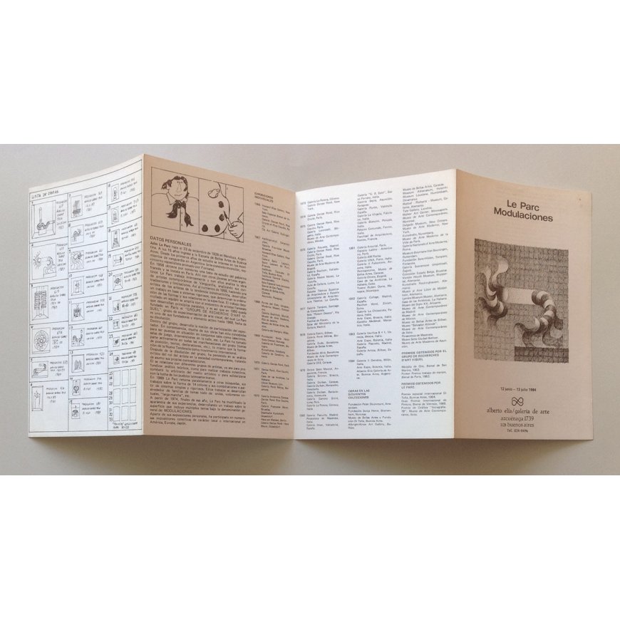 Catálogo de la exposición con ilustraciones en b/n. Textos de Julio Le Parc, Pablo Neruda, Jean Louis Pradel y Antonio Bonet Correa. Listado de obras expuestas. Adjunta tarjeta con una reproducción en color ("Modulación 660")