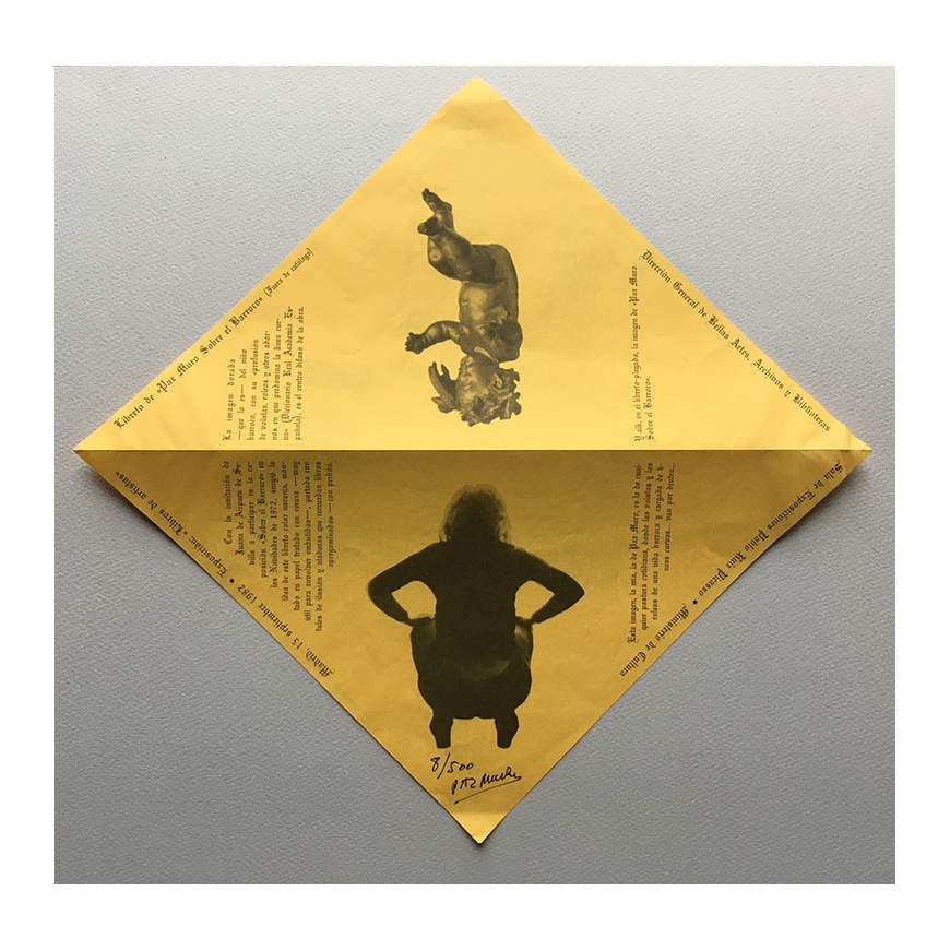 Hoja suelta impresa por ambas caras y plegada en dos. Firmada y numerada a mano por Paz Muro (8/500)
