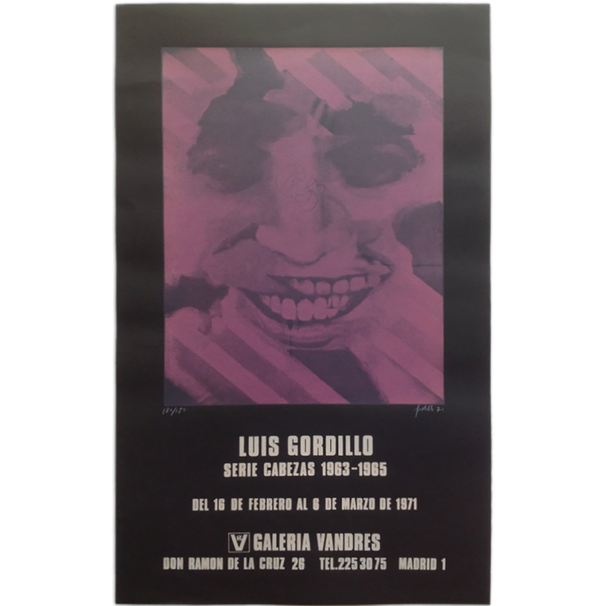 Cartel serigráfico de la exposición, numerado - 136 de 150 - y firmado a mano por Gordillo. Muy buen estado