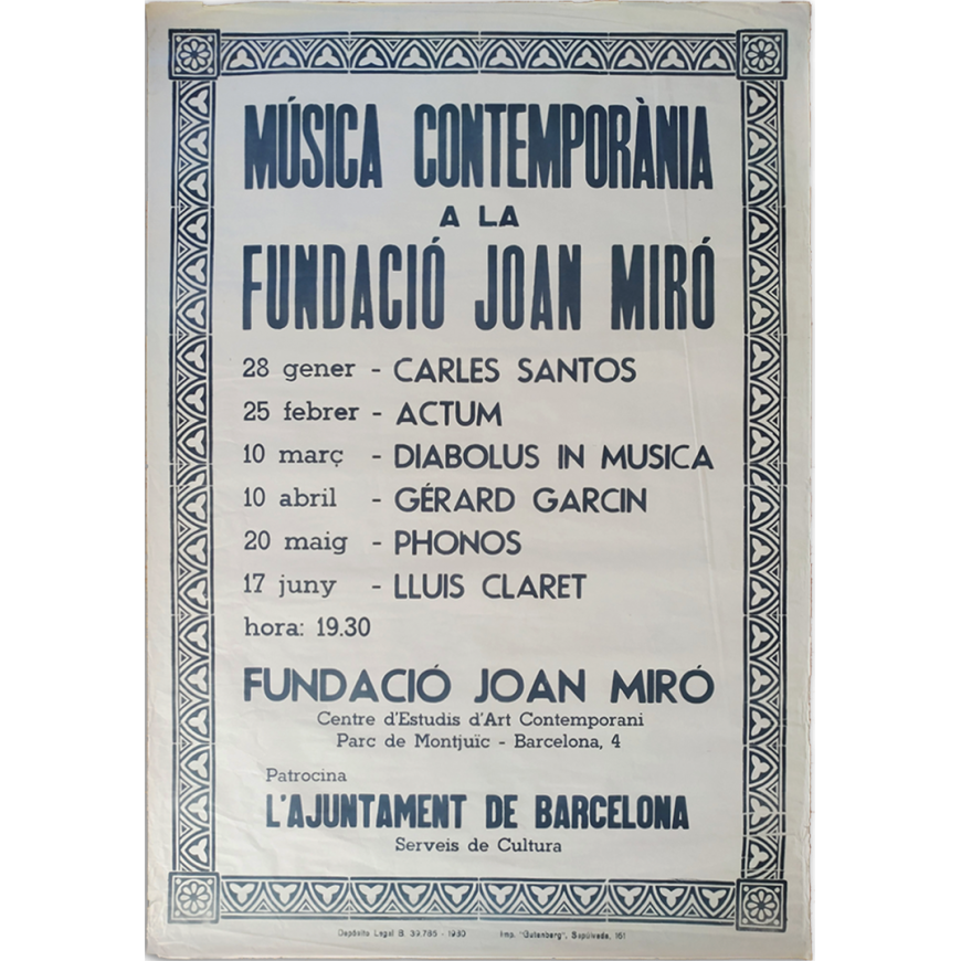 Música contemporània a la Fundació Joan Miró. Barcelona, 28 de gener al 17 de juny, 1980