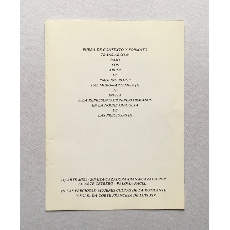 Fuera-de-contexto y formato trans-ARCO-83 bajo los arcos de "Molino Rojo" Paz Muro-Artemisa (1) te invita a la representación-performance en la noche oh-culta de Las Preciosas (2)
