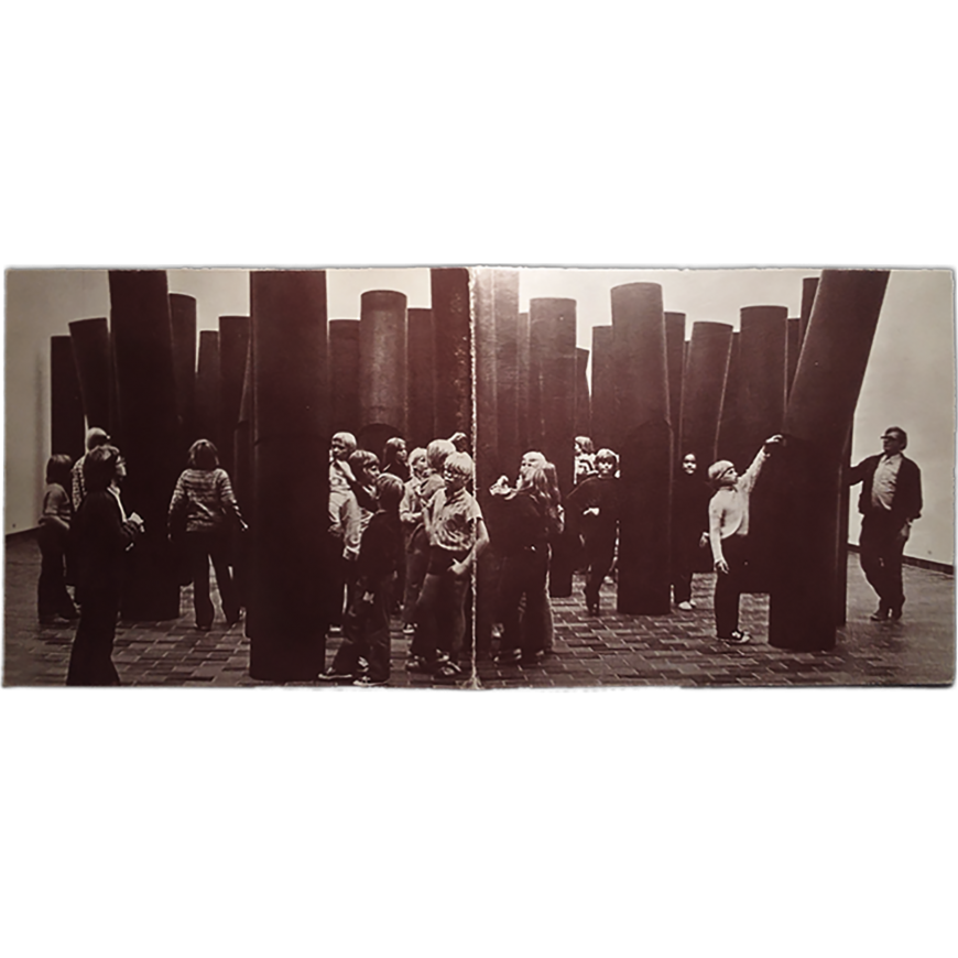 Díptico-ynvitación a la exposición en la Fondation Maeght, Saint-Paul, 23 de marzo a 31 de mayo de 1974. Ilustrado con fotografía en blanco y negro