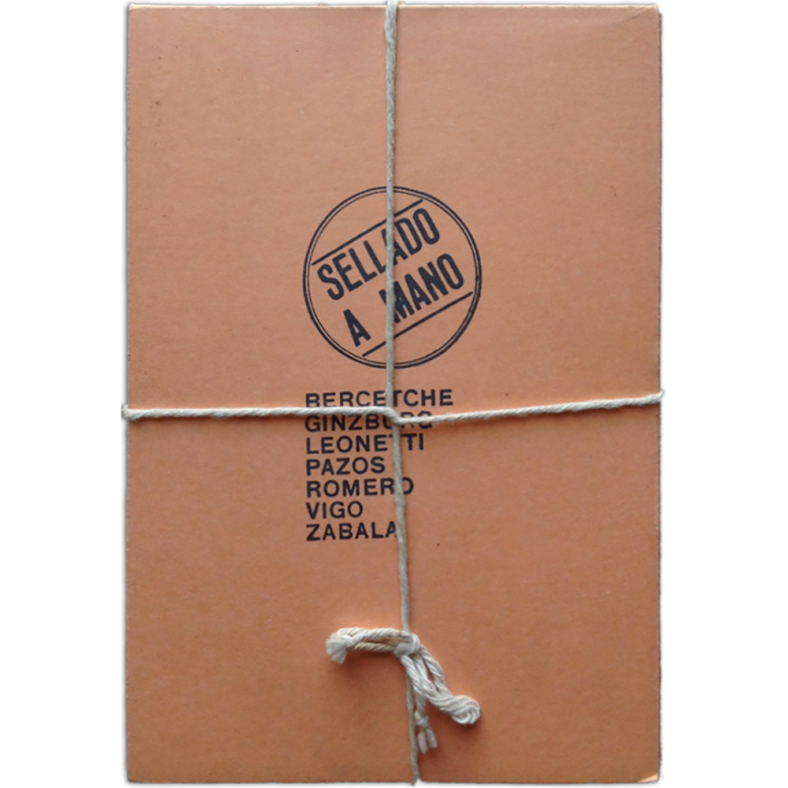 Carpeta colectiva editada por Edgardo Antonio Vigo en 1974 con las colaboraciones de Bercetche, Ginzburg, Leonetti, Pazos, Romero y Zabala: trabajos con los sellos de goma de cada uno de los artistas. En carpeta original en cartulina cerrada con un cordón