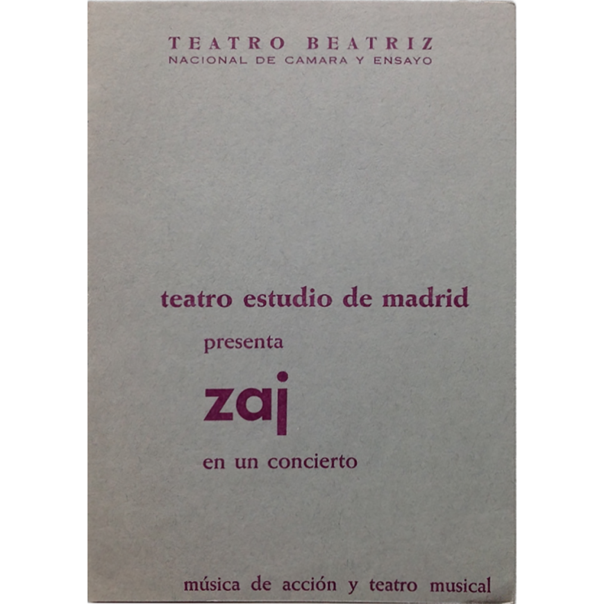 Teatro Estudio de Madrid presenta Zaj en un concierto. Música de acción y teatro musical. Teatro Beatriz, [Madrid], Temporada 66-67. Director: Víctor Auz