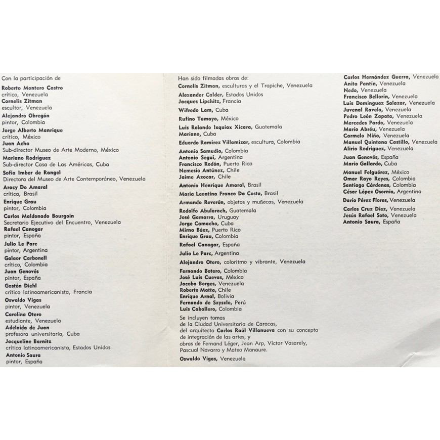 Pliego de 3 hojas con texto de Rodolfo Izaguirre (Director de la Cinemateca Nacional de Venezuela). Leva marca de doblez en una de las esquinas, por lo demás buen estado
