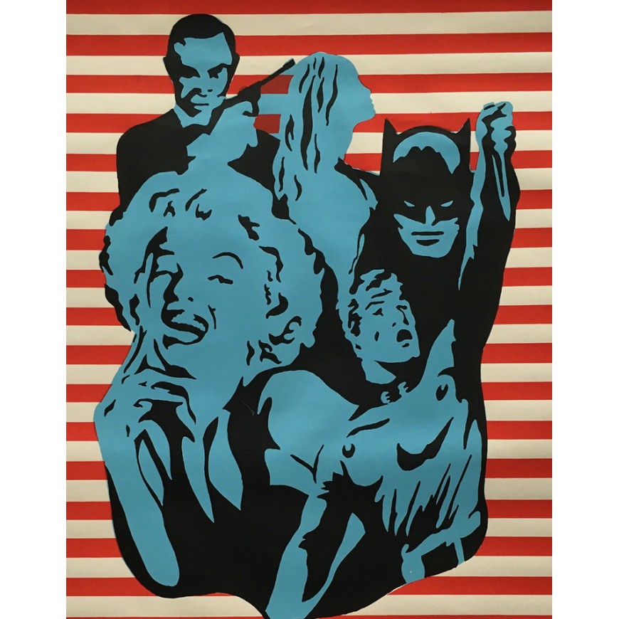 Cartel pop de los años 60-70 en el que aparecen Marilyn Monroe, James Bond, Batman... . Editado en serigrafía por POSTERS EGAT. Muy buen estado