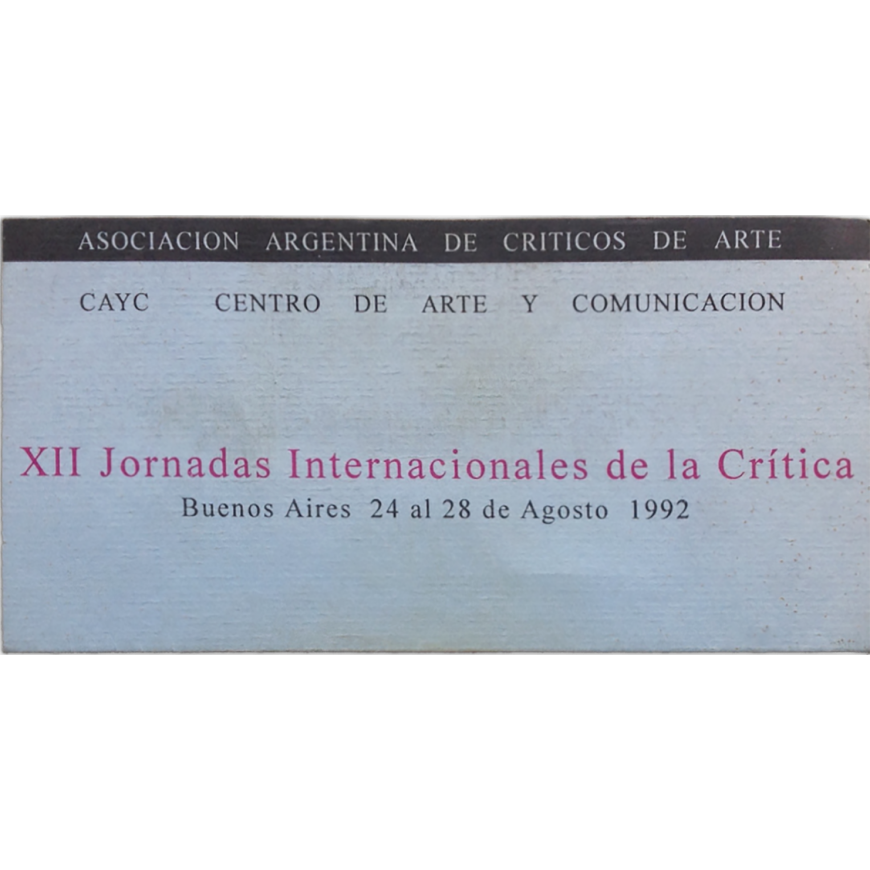 XII Jornadas Internacionales de la Crítica, Buenos Aires, 24 al 28 de Agosto 1992. Asociación Argentina de Críticos de Arte - CAyC Centro de Arte y Comunicación