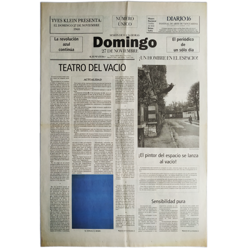 El Museo Nacional Centro de Arte Reina Sofía junto con el Suplemento Culturas de Diario 16, publican esta reproducción con motivo de la exposición Yves Klein (junio-agosto 1995)