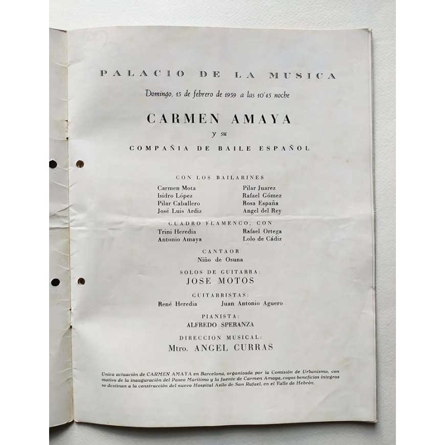 (Adjuntamos también el programa de la actuación de la bailaora y su compañía en el Palacio de la Música de Barcelona el 15 de febrero de 1959; con textos de Sebastián Gash y Sempronio)