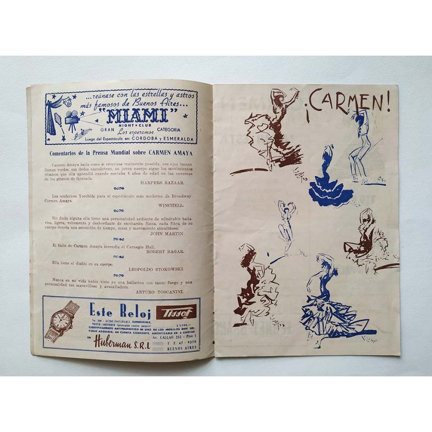 Programa del espectáculo en el Teatro Grand Splendid de Buenos Aires en la década de los 50. Con texto de Jean Cocteau