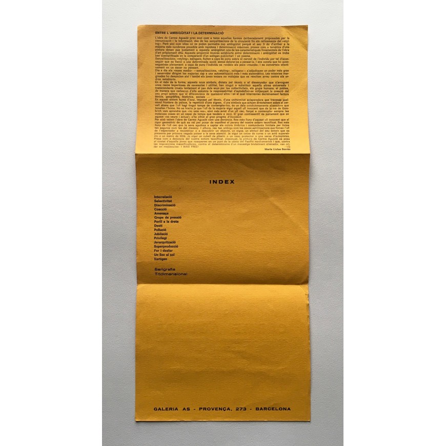Carme Aguadé. Pintura - Serigrafia - Tridimensional. Galeria AS, Barcelona, del 25 de maig al 16 de Juny 1971