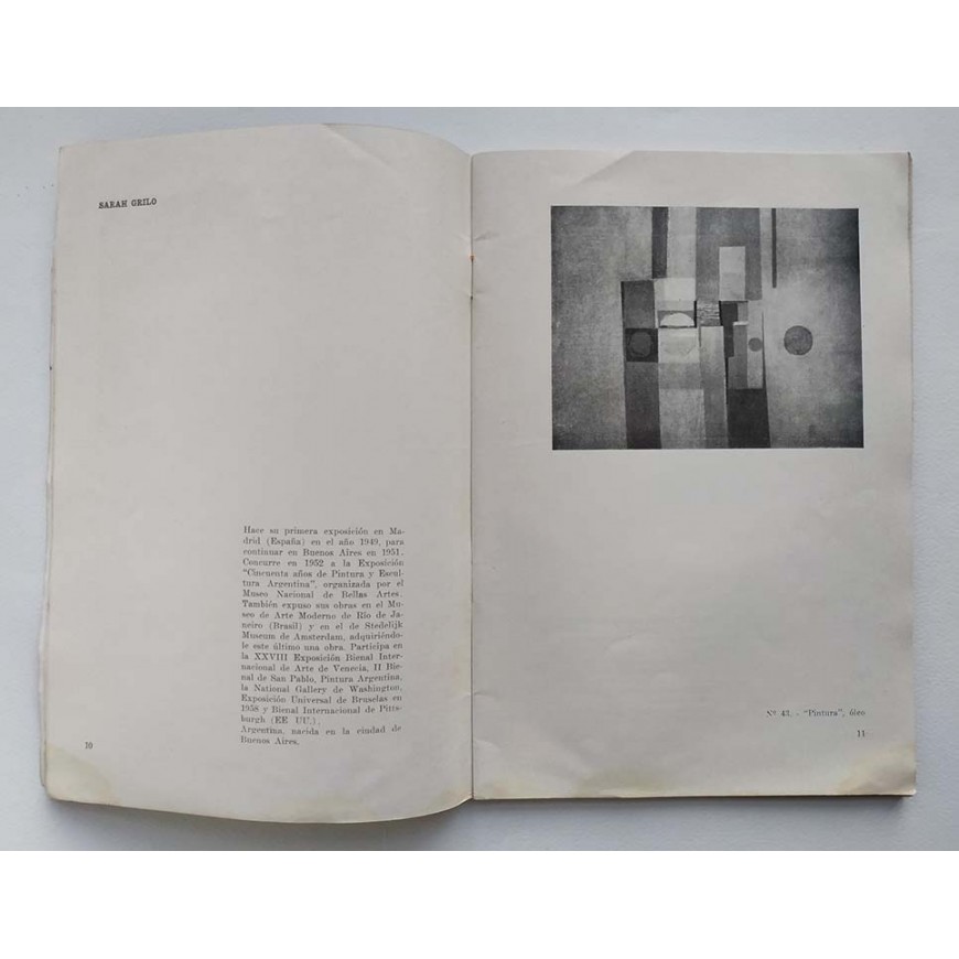 Catálogo de la exposición. Ilustraciones en b/n. Se mostraron obras de Sarah Grilo, Ary Brizzi, Vicente Forte, Fernández Teijeiro, Magda Frank, Sixto Nieto, López Anaya, Alfredo de Vicenzo, Hugo Irureta, Ezequiel Linares y otros. Con leve marca de humedad en borde inferior de cubiertas y hojas