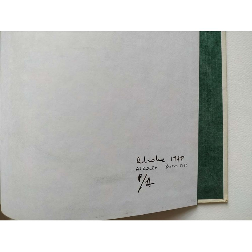 Libro de artista de Carlos Alcolea, presentado en 1978 en la sala Buades y editado por la galería. Con una dedicatoria con dibujo original a tinta en primera hoja blanca firmada y fechada en 1978. La edición fue de 60 ejemplares; éste "P/A" (Prueba de Artista). Cubiertas originales en cartoné pintado a mano