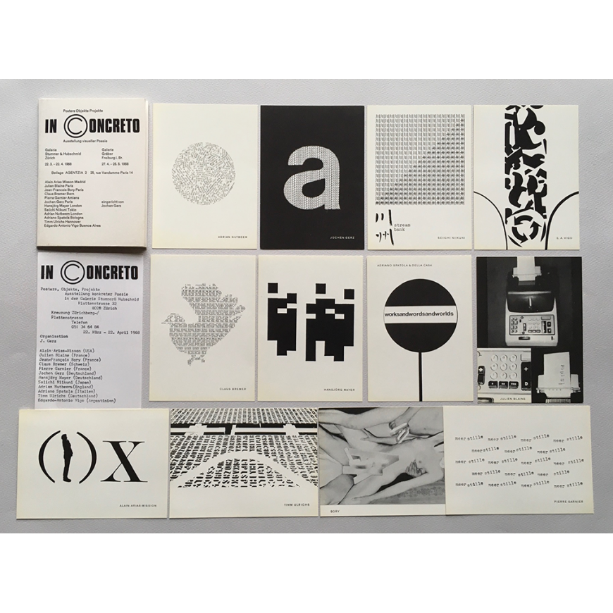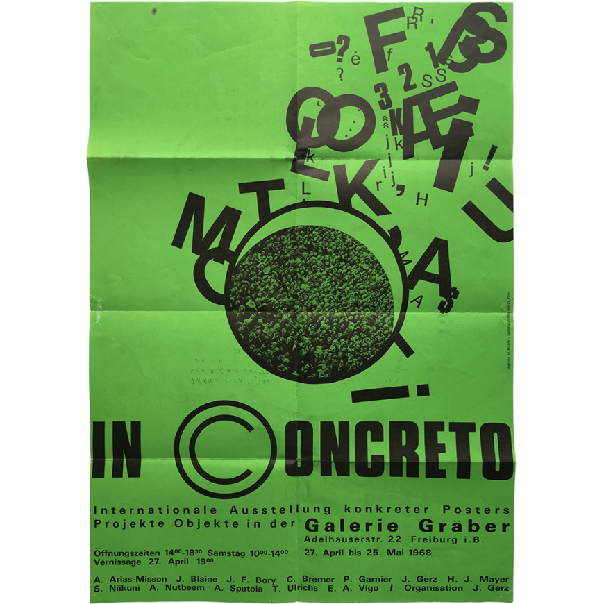 IN CONCRETO Posters Objekte Projekte. Ausstellung visueller Poesie. Galerie Stummer & Hubschmid, Zürich, 22. 3. - 22. 4. 1968 / Galerie Gräber, Freiburg i. Br., 27. 4. - 25. 5. 1968