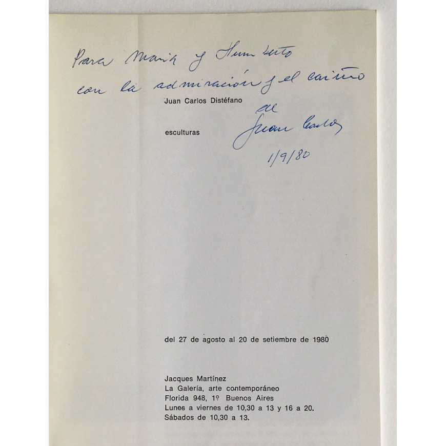 Juan Carlos Distéfano. Esculturas 1976-1980. Galería Jacques Martínez, Buenos Aires, 27 agosto al 20 de setiembre de 1980