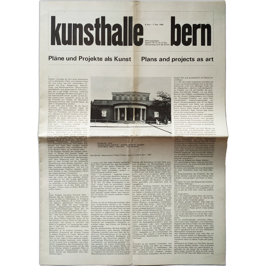 Kunsthalle Bern, 8. Nov. - 7. Dez. 1969: Pläne und Projekte als Kunst - Plans and projects as art