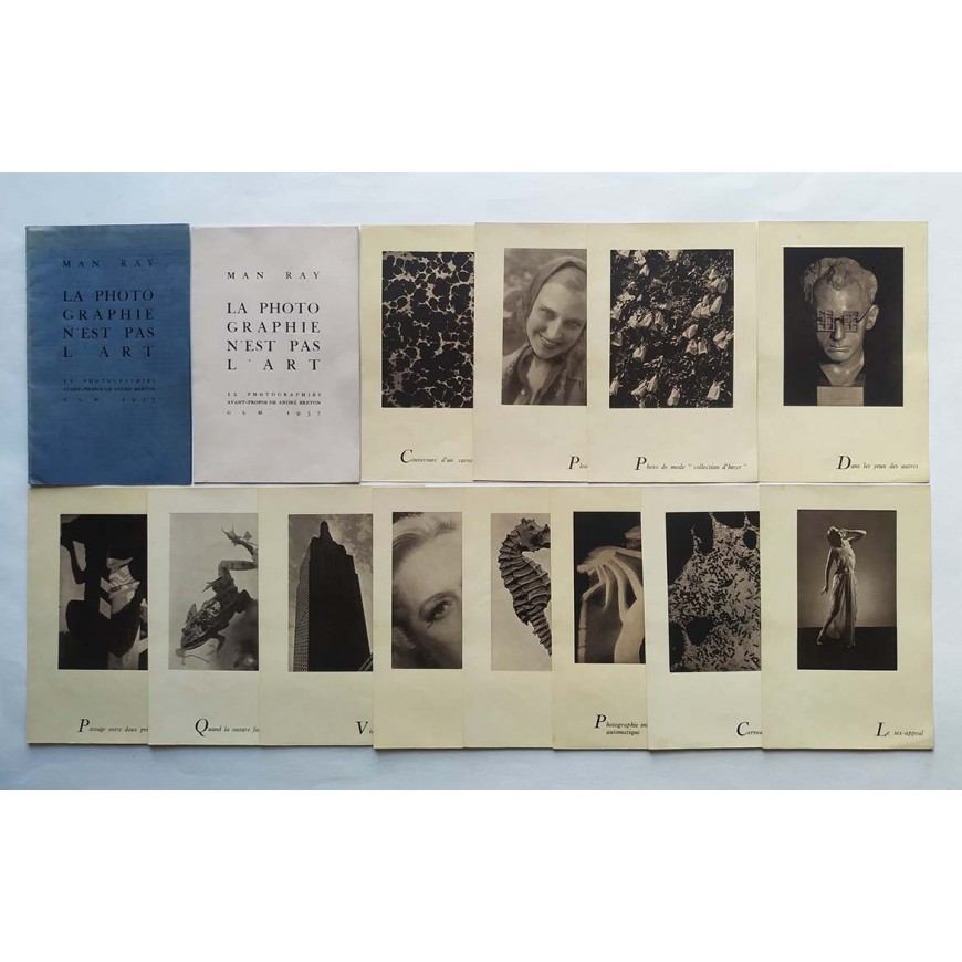 12 fotografías en b/n en hojas sueltas. Prólogo de André Breton. No conserva la camisa original en cartulina negra. Portada y lomo levemente decolorados, por lo demás buen ejemplar. Estuche protector en cartoné