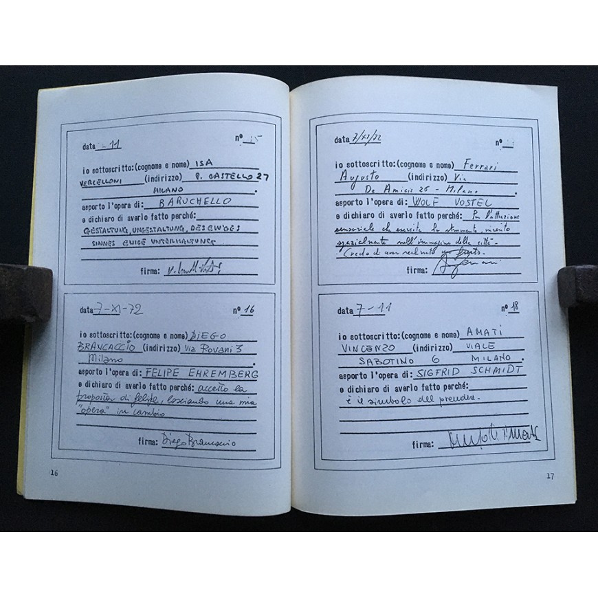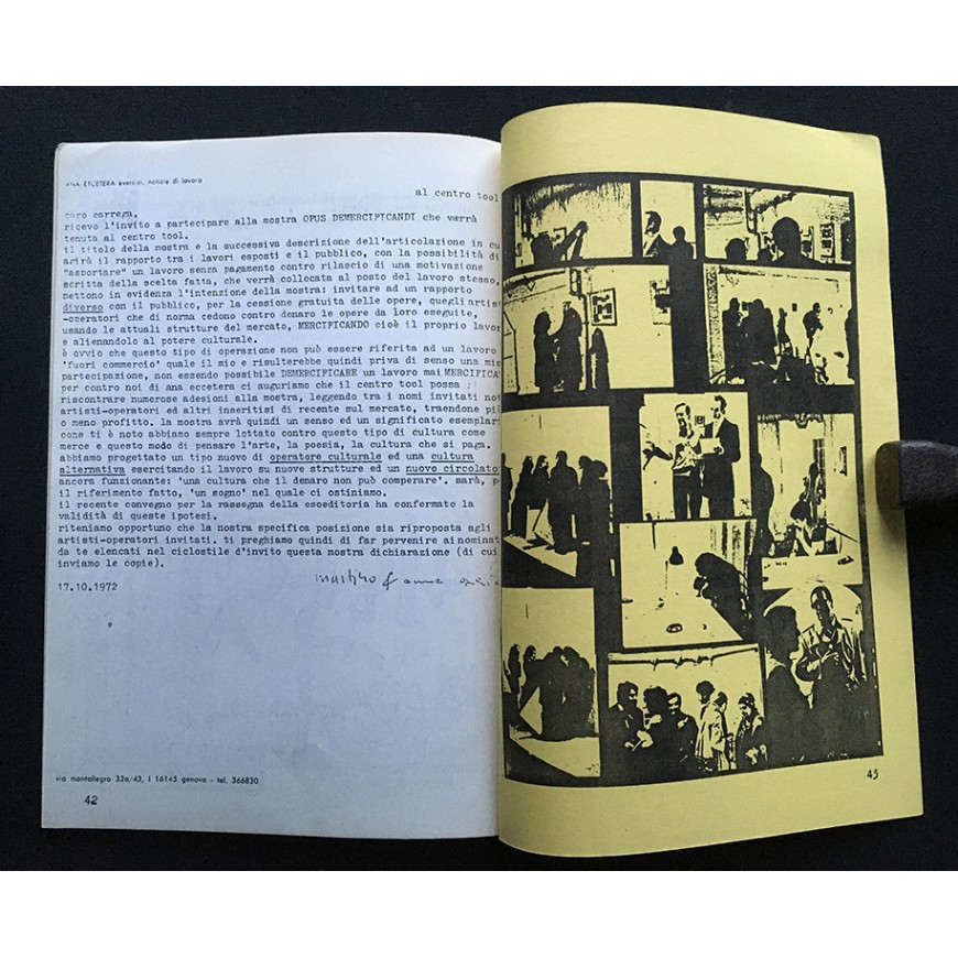 "Opus Demercificandi" da un'idea di Vincenzo Accame. Centro Tool, Milano, dicembre 1972