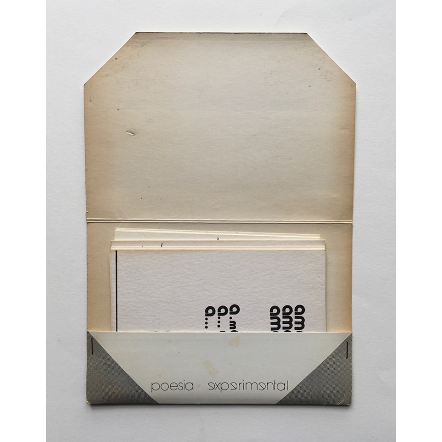 Carpeta colectiva que contiene 10 tarjeta sueltas con poemas visuales impresos en negro. En carpeta original con grapas