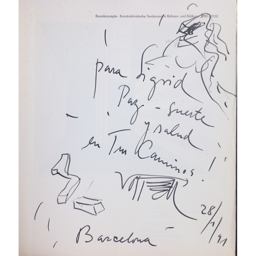 Catálogo de la exposición. Numerosas ilustraciones en color y b/n. Ejemplar con una dedicatoria manuscrita con dibujo de Wolf Vostell a rotulador negro y a plena página