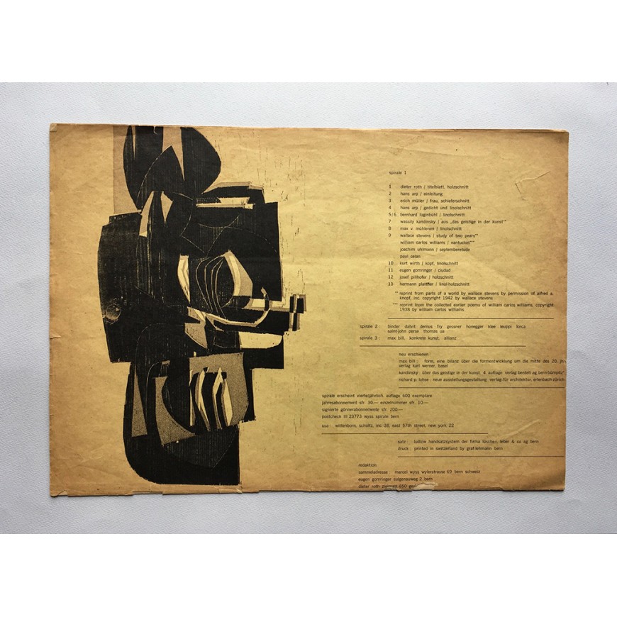 Spirale 1. Internationale Zeitschrift für Junge Kunst: Arp, Celan, Gomringer, Kandinsky, Luginbühl, V. Mühlenen, Müller, Pillhofer, Roth, Stevens, Uhlmann, Williams, Wirth