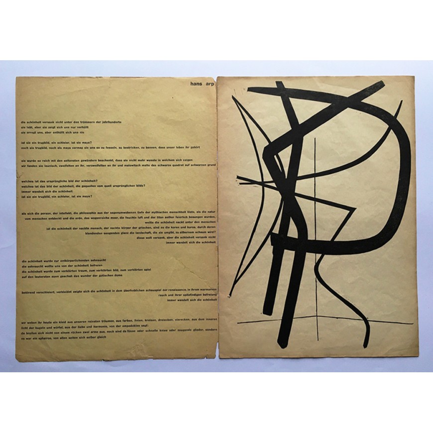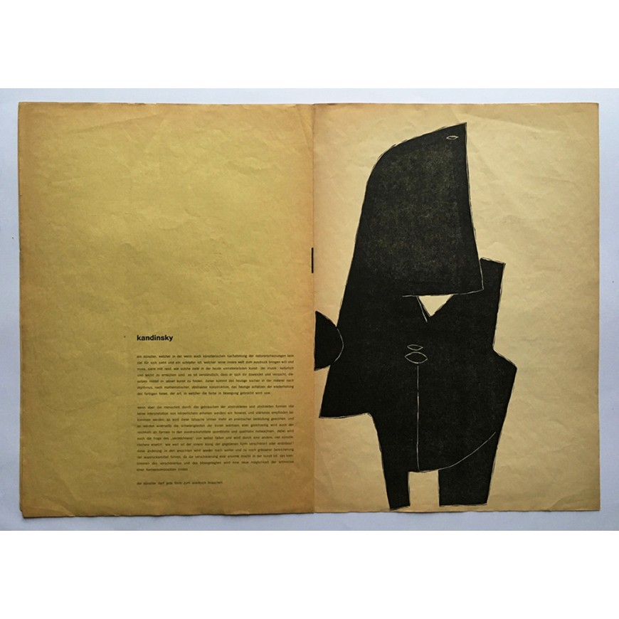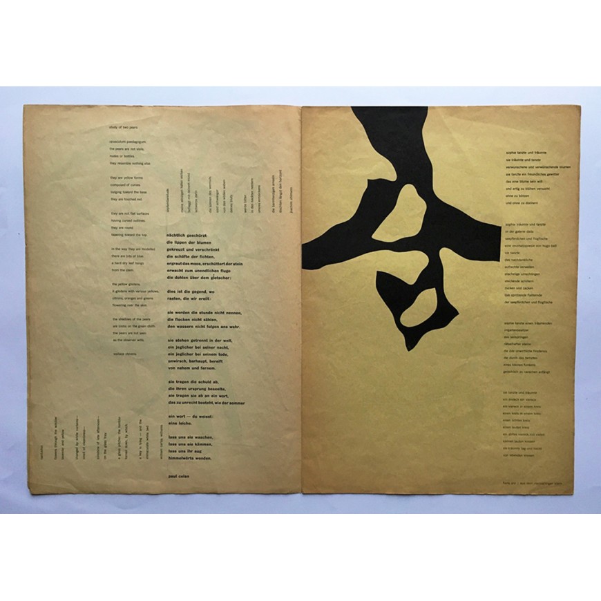 Con gráfica de Dieter Roth, Erich Müller, Hans Arp, Bernhard Luginbühl, Max von Mühlenen, Kurt Wirth, Josef Pillhofer y Hermann Plattner. Textos de Hans Arp, Wassily Kandinsky, Wallace Stevens, William Carlos Williams, Paul Celan, Joachim Uhlmann y Eugen Gomringer. Edición de 600 ejemplares; éste con algunas roturas y pérdidas