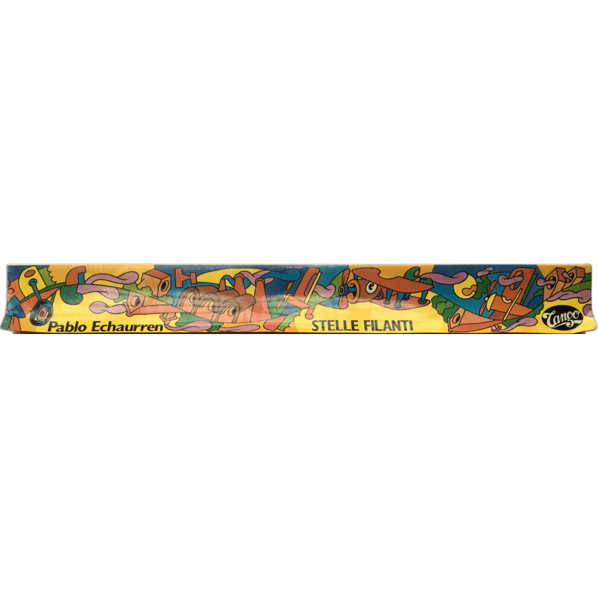 Libro de artista de Pablo Echaurren con ilustraciones en negro y un formato tan estrecho que apenas puede abrirse. Presentación de Renato Barilli. Proyecto gráfico y texto final de Giovanni De Mauro. El tiraje fue de 3000 ejemplares de los cuales 1500 numerados y firmados por el autor (éste pertenece al tiraje sin firmar)