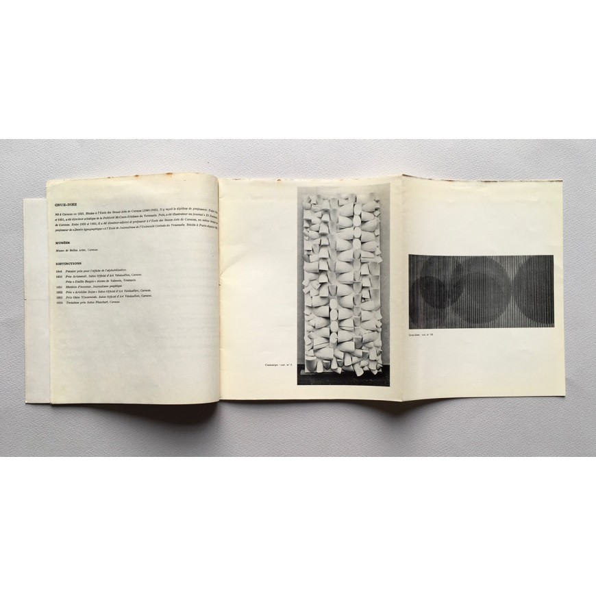 Catálogo de la muestra internacional de arte cinético y arte óptico. Dos láminas desplegables con ilustraciones en b/n. Textos sobre cada artista de Karl K. Ringstrom (en francés)