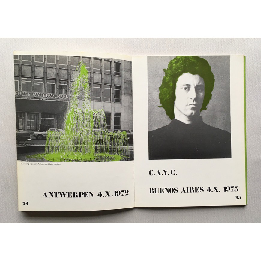 Catálogo de la exposición. Texto introductorio de Pierre Restany (en holandés, francés e inglés). Numerosas fotografías y un desplegable. (Catálogo-libro de artista sobre el proyecto "Kleuring van het Bonapartedok" - Coloración del muelle Bonaparte -)