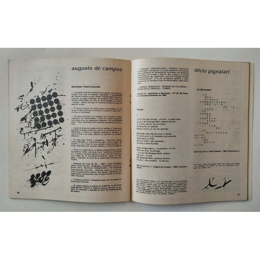 Textos de César Aira, Raúl Gustavo Aguirre, Ramón Alcande, Nahuel Santana ("Aportes Renovadores en la Poesía Brasileña") y otros. Este número incluye poemas de Susana Cerdá, Héctor Piccoli, Sousândrade, Oswald de Andrade, Augusto de Campos, Décio Pignatari, Haroldo de Campos, Ferreira Gullar, Mário Chamie, Alcides Buss, Cid Seixas, Cassiano Ricardo, Carlos Drummond de Andrade... . Ilustraciones: Armando Rearte. Incluye separata: Arturo Carrera. Un día en "La Esperanza"